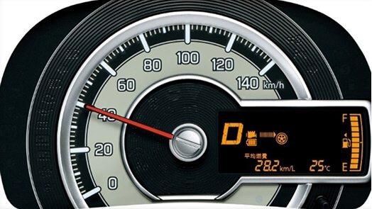 ガソリン・ハイブリッド軽自動車クラスNo.1の燃費28.2km/リットルを実現しました。安全機能では、衝突被害軽減ブレーキ「デュアルセンサーブレーキサポートII」や、