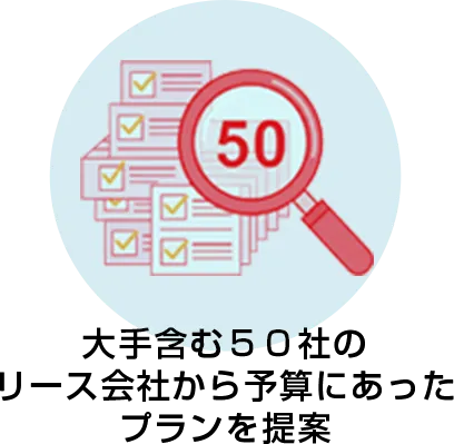 お客様のご利用用途、予算に併せて、大手含む50社のリース会社から最適なリースプランを提案致します。
